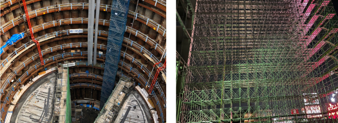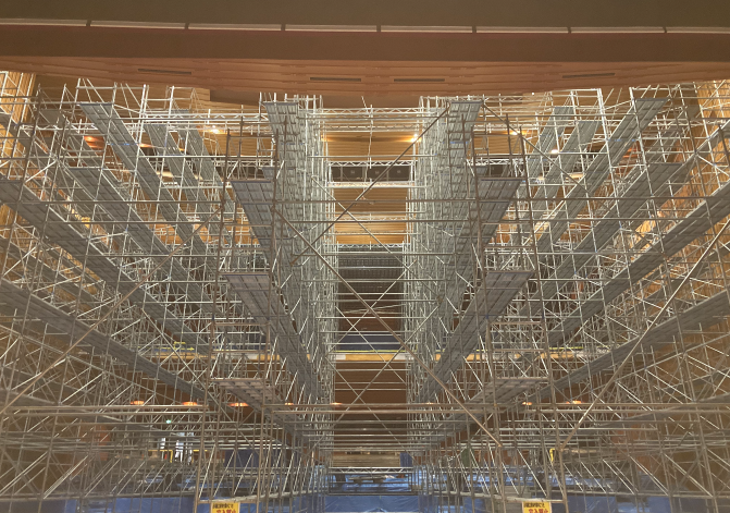 大辰では、2018年GOOD DESIGN AWARDを受賞した次世代新型足場「TOBILINE」を自社で保有?管理しています。年末や年度末など、資材が不足しがちな繁忙期にも安定して資材を確保できるので、資材の仕入れを待つことなく、軽いフットワークでスピーディーに仮設工事に著手することができます。
